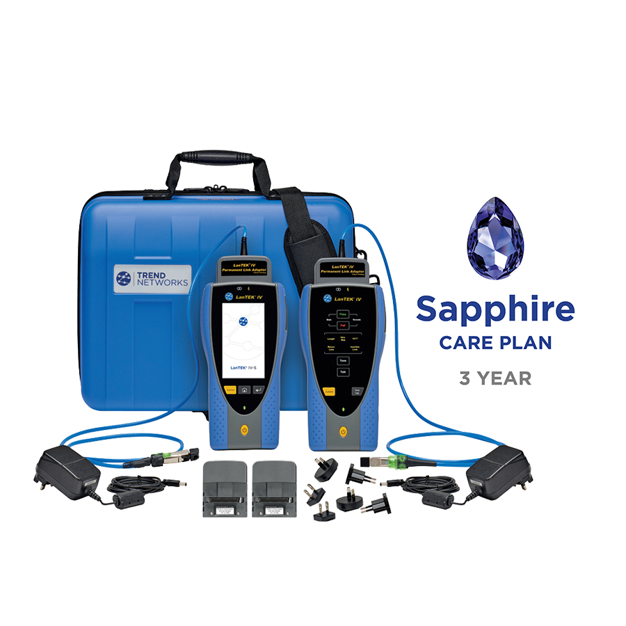 This bundle combines the proven LanTEK IV-S 500 MHz copper certifier with extended three-year Sapphire Care coverage, offering outstanding value and long-term protection. It is designed for installers who rely on their certifier daily and want predictable support costs.