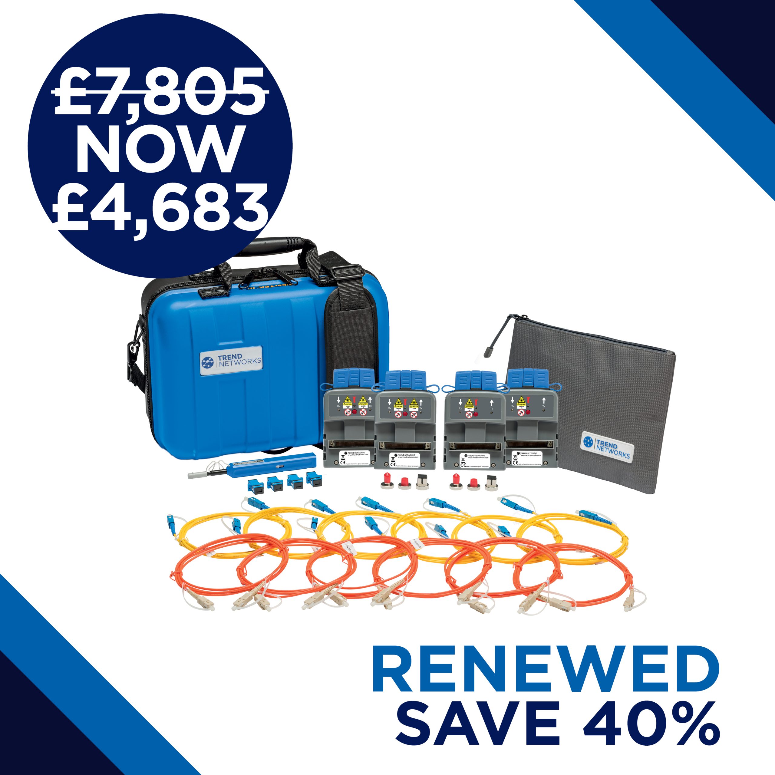Two multimode FiberTEK IV modules, two single-mode FiberTEK IV modules, lockable semi-rigid carrying case, SC, FC, ST adaptors for modules (2 ea.), SC-SC patch cords, 6 x 9ฮผm, 6 x 50ฮผm compliant to ISO/IEC 14763-3 standard, quick reference guide. Compatible with LanTEK IV.
